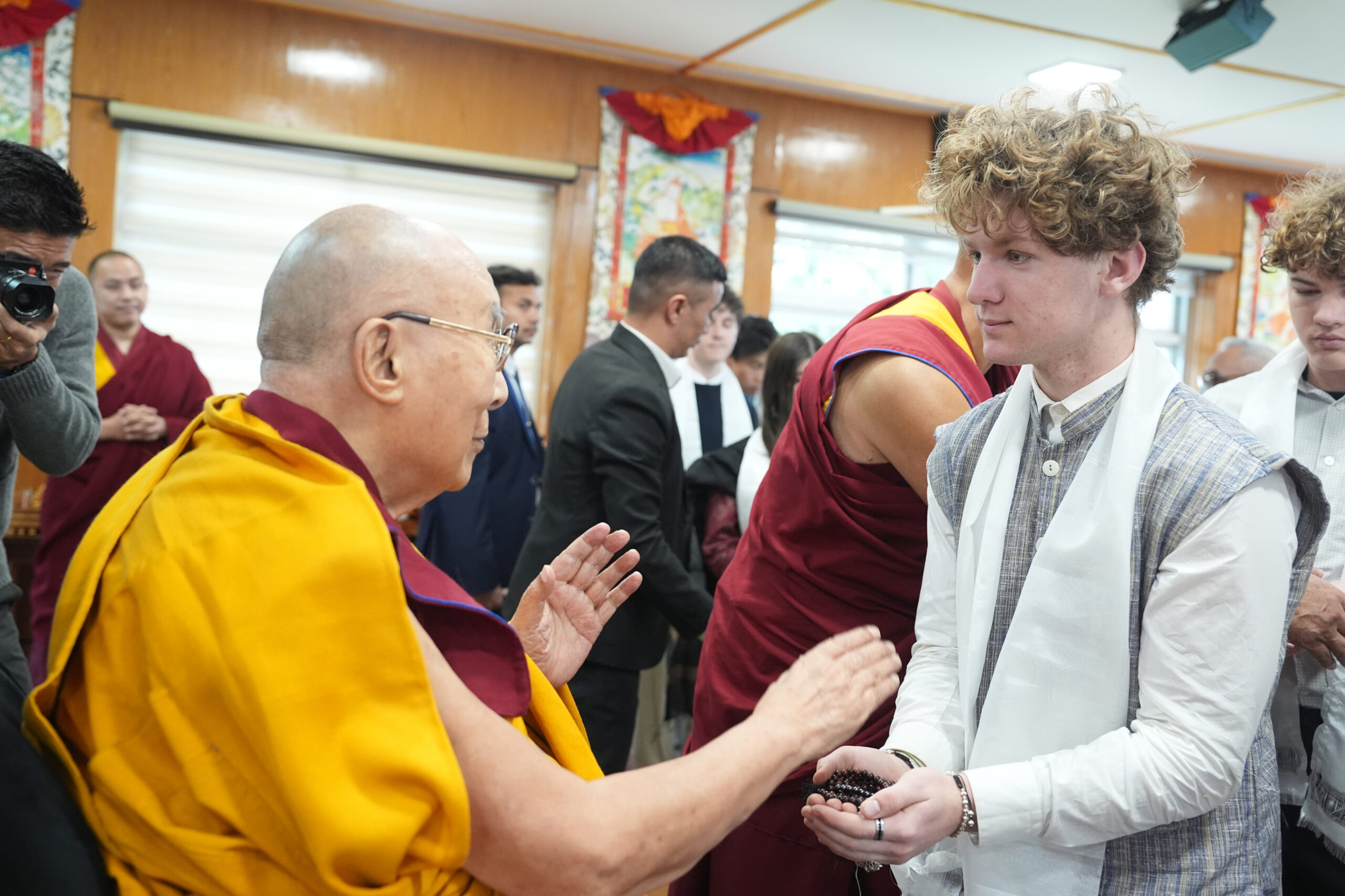 The journey culminated this morning in a personal blessing from His Holiness. The Dalai Lama individually touched each student and blessed personal objects and ceremonial scarves, creating a deeply moving and unforgettable experience.